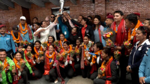 इन्टरनेशनल वुमन्स च्याम्पियनसिपमा नेपाल र म्यानमारको बराबरी Posted byLoktantra Timesफाल्गुन ११, २०८१ Posted inफुटबल