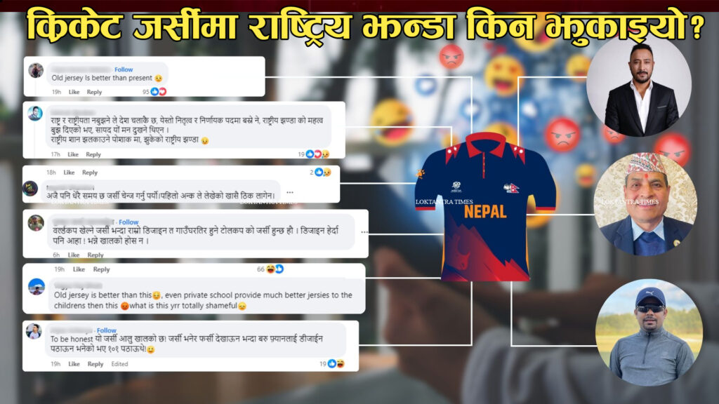 जर्सीबारे टिप्पणी गर्दै एकजना प्रयोगकर्ता लेख्छन्, ‘सगरमाथाको माथिल्लो भागमा सेतो कलरमा हुनुपर्ने, गैंडाको कमसेकम क्यानको लोगोमा मुख मात्र देखिन्छ । झण्डा काँधमा भन्दा बाउलामा हुनुपर्ने, भगवान गौतम बुद्धको फोटो अगाडि वा पछाडि मिलाएर राख्नुपर्ने थियो ।’