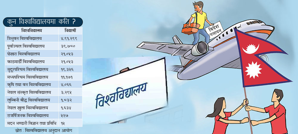 काठमाडौँ । छिमेकी मुलुक भारतका विश्वविद्यालय तथा शैक्षिक संस्थामा उच्च शिक्षा अध्ययन गर्न जाने नेपाली विद्यार्थीको घुइँचो लागिरहँदा नेपालका विश्वविद्यालय तथा शैक्षिक संस्था भने विद्यार्थी नपाएर छट्पटाइरहेका छन् ।