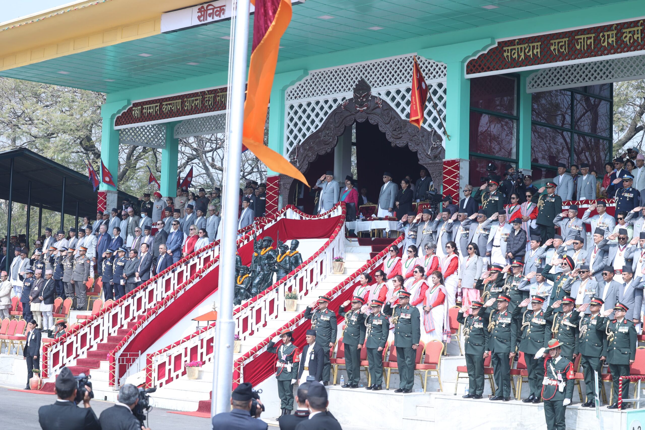 काठमाडौं । काठमाडौंको टुँडिखेलमा २६२ औं सेना दिवस मनाइएको छ। शिवरात्रिको दिनमा पर्ने सेना दिवस बुधबार टुँडिखेलमा मनाइएको हो। राष्ट्रपति रामचन्द्र पौडेल सेना दिवसका अवसरमा आयोजित विशेष समारोहमा प्रमुख अतिथिका रूपमा सहभागी भएका छन्। उनी नेपाली सेनाको उनी परमाधिपतिसमेत हुन्। यस्तै समारोहमा केपी शर्मा ओलीलगायत उच्च पदस्थ व्यक्तित्वहरू पनि सहभागी भएका थिए।